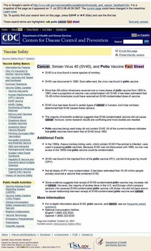 The CDC admitted that they Injected 98 million of us with cancer . Dated July 11, 2013.